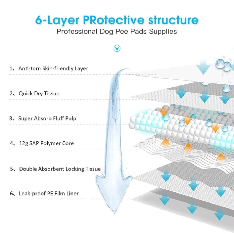 • Super Absorbent and Thicker - Thickened disposable pads for dogs and 6-layer protection design makes our Clevinger dog pee pee pads more absorbent than the most puppy potty pads on the market.