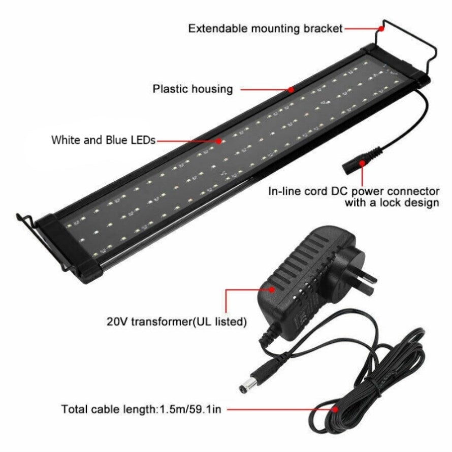 3.Extendable Adjustable bracket makes LED light fits different size aquariums in extendable range.