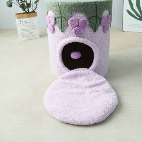 Step into a world of purr-fection with CATIO Purple Grape Cat House. This enchanting retreat offers a safe and cozy space where your cat can unwind, snooze, and find ultimate comfort. The round entrance leads to a secure haven adorned with different shades of purple, evoking a touch of magic in your home decor.