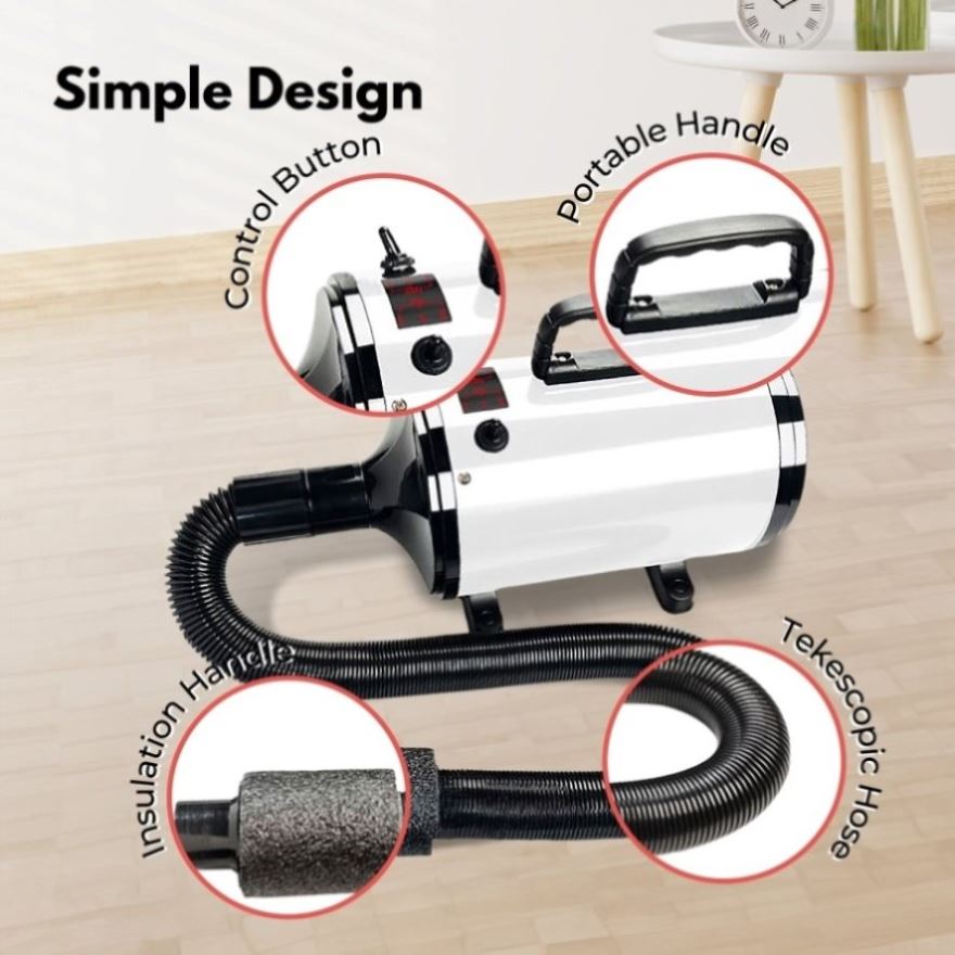 Efficient and Powerful Drying with High Air Flow: Experience efficient and powerful drying for your pet with the high air flow of this pet hair dryer. It ensures quick and effective drying to keep your furry friend comfortable.
