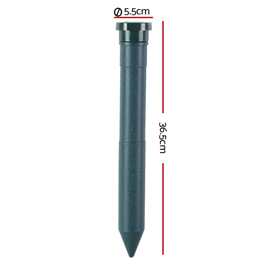 Weatherproof and eco-friendly with its ABS plastic construction, our Gardeon Snake Repeller keeps out not only snakes but also other garden pests such as moles, rats and mice safely and humanely. It does so by emitting a sonic pulse and vibration through the ground to deter their presence. While each snake repeller has an effective range of up to 40m in diameter, you can extend that coverage through the use of multiple repellers to provide a formidable barrier. They are also portable to bring along to camping trips for peace of mind. Suitable for your garden, yard, farm and orchard, the snake repeller works 24/7 and up to six months with good quality batteries (not included).