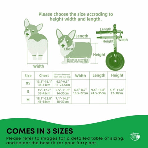 Sizing Note: This wheelchair is specifically designed for small dog breeds up to 10kg. The wheelchair frame remains the same size across all options — what changes is the harness size, which must match your dog’s body measurements.