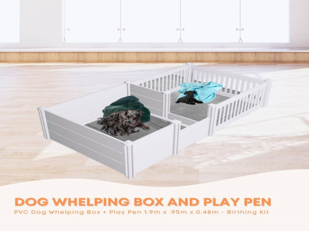Rooster Farms PVC Dog Whelping Box Play Pen 1.9m x .95m x 0.48m - Birthing Kit V238-SUPDZ-41325231505488