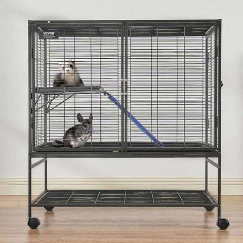 VEVOR 39" Metal Small Animal Cage 2-Tier Rolling Ferret Cage with Tray A Ramp V952-JSXDL362439IF6COGV0