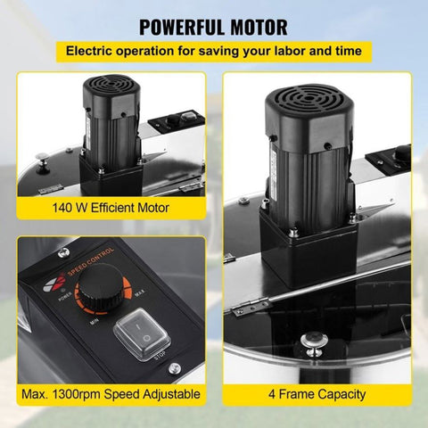VEVOR 4 Frame Electric Honey Extractor Beekeeping 120 W Motor 2 Clear Lids V952-S-4XXDDYMJ0000001V3