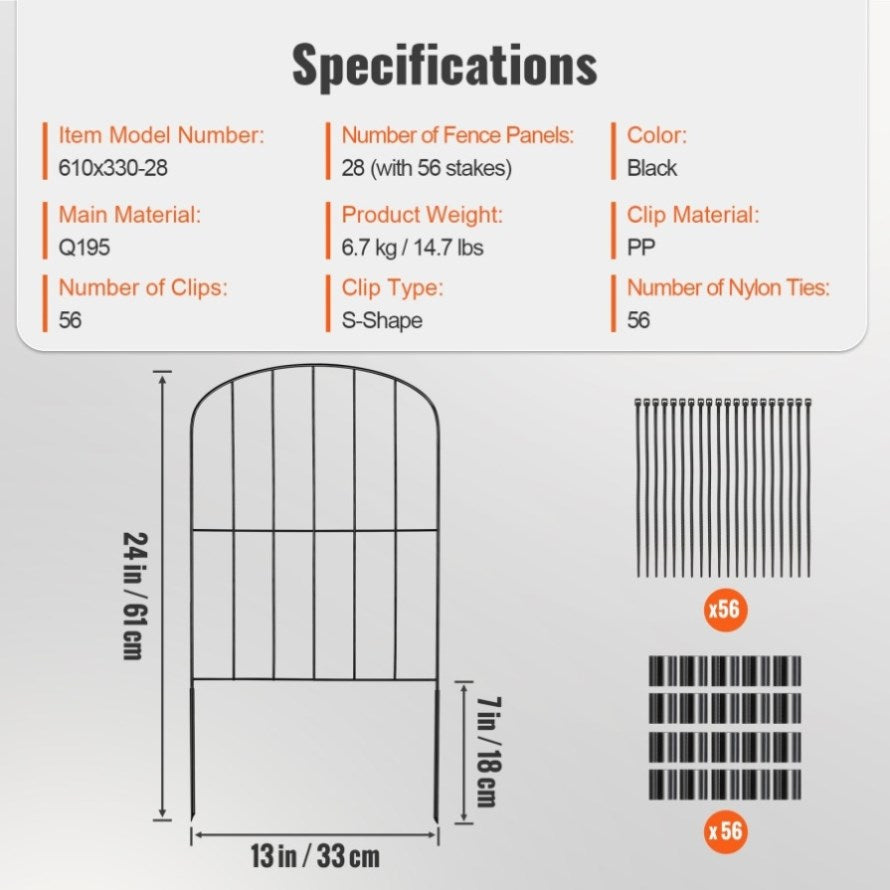 VEVOR Garden Fence, No Dig Fence 61 x 33 cm Animal Barrier Fence, Underground Decorative Garden V952-JSWL2413INCHNOKRCV0