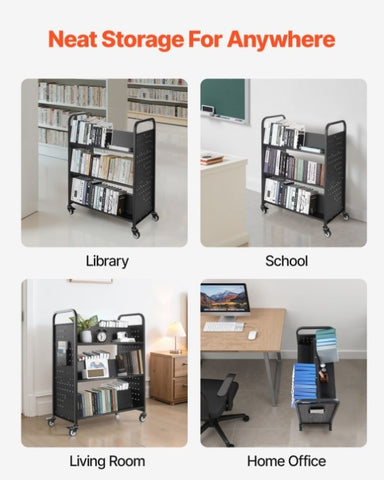 Ideal for library restocking, transporting school supplies, distributing office documents, or organizing books and items at home. This rolling book shelf is your go-to solution for work and home needs