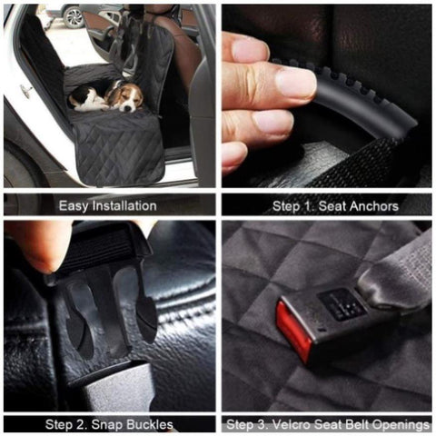 - Keep Clean: 600D oxford with water-resistant coating and tpu which is a new waterproof material can prevent your seats from getting stained or wet. The convertible side flaps on dog hammock for car help your dog to get in and out of car easily ,while preventing scratching the leather benches and doors.