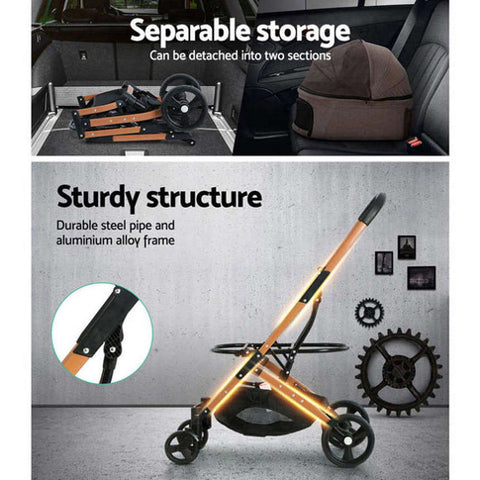 i.Pet Pet Stroller Dog Pram Large Cat Carrier Travel Foldable 4 Wheels Pushchair Double PET-STROLLER-100-BR