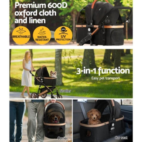 i.Pet Pet Stroller Dog Pram Large Cat Carrier Travel Foldable Pushchair 4 Wheels PET-STROLLER-110-BK