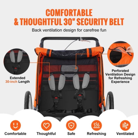 VEVOR Bike Trailer for Toddlers, Kids, Double Seat, 40 kg Load, 2-In-1 Canopy Carrier Converts to V952-LYS100B1020ILJ9NWV0