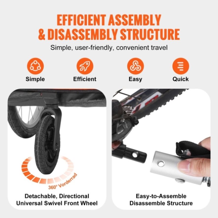No sweat assembly or disassembly with our kids bike trailer's quick-release design, saving you time and effort for a more convenient journey. Get on the road faster and enjoy hassle-free adventures.