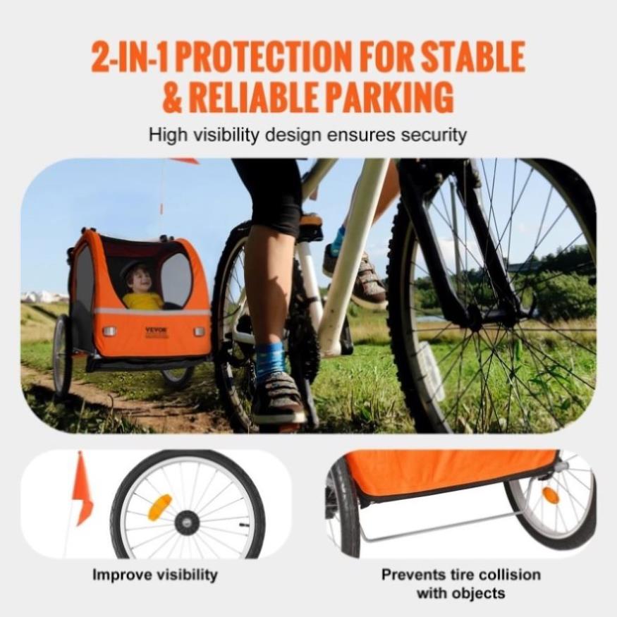 With an all-round protection and a secure parking feature, our bicycle trailer keeps your wheels safe from harm and ensures a stable stop. Plus, bright reflectors make sure you're seen during the ride, adding an extra layer of security.