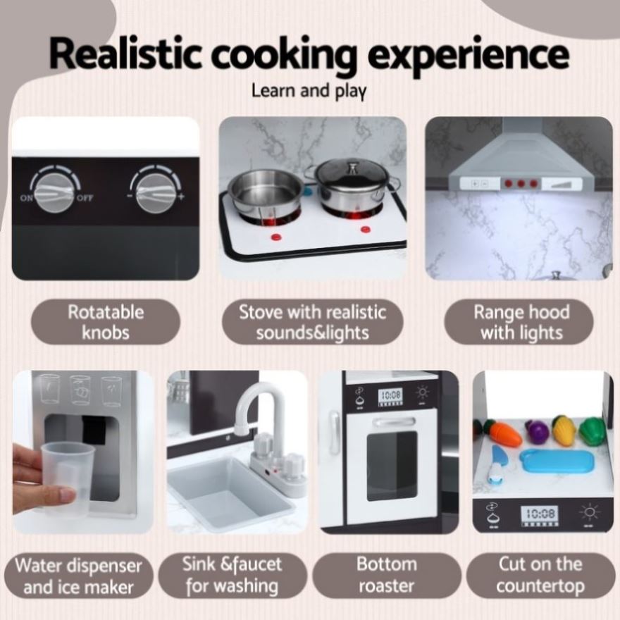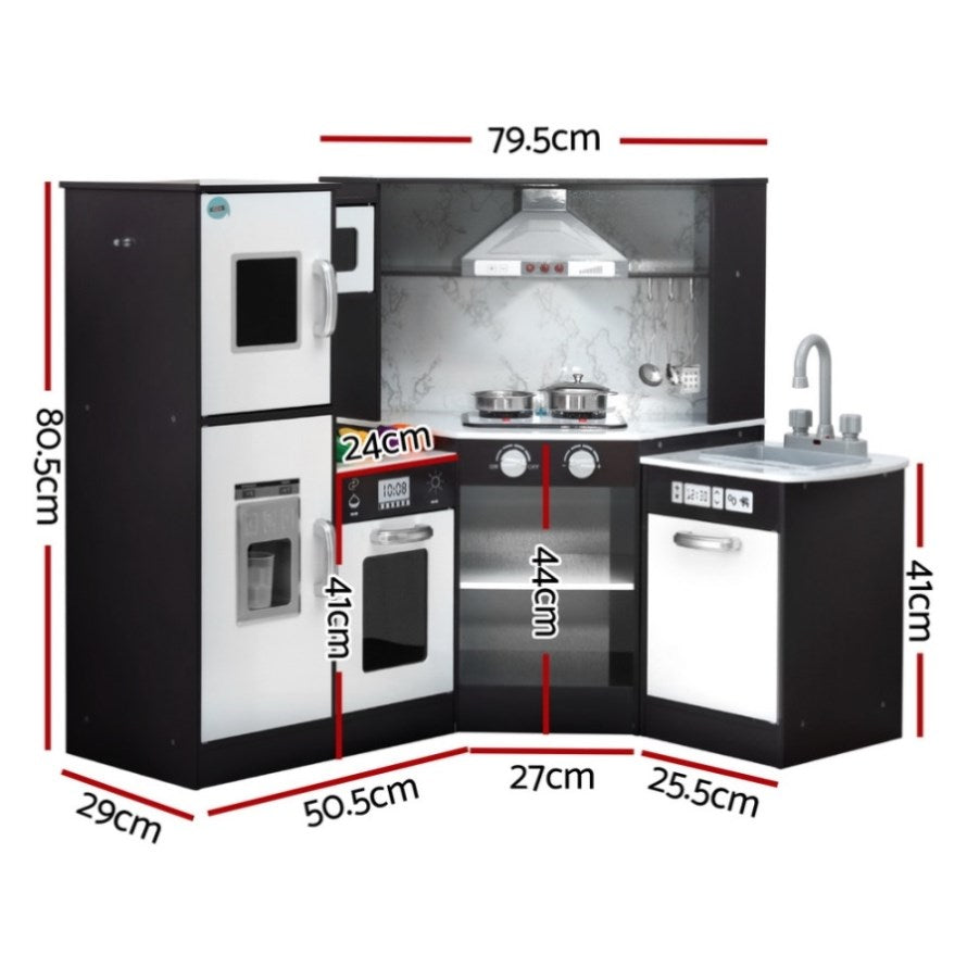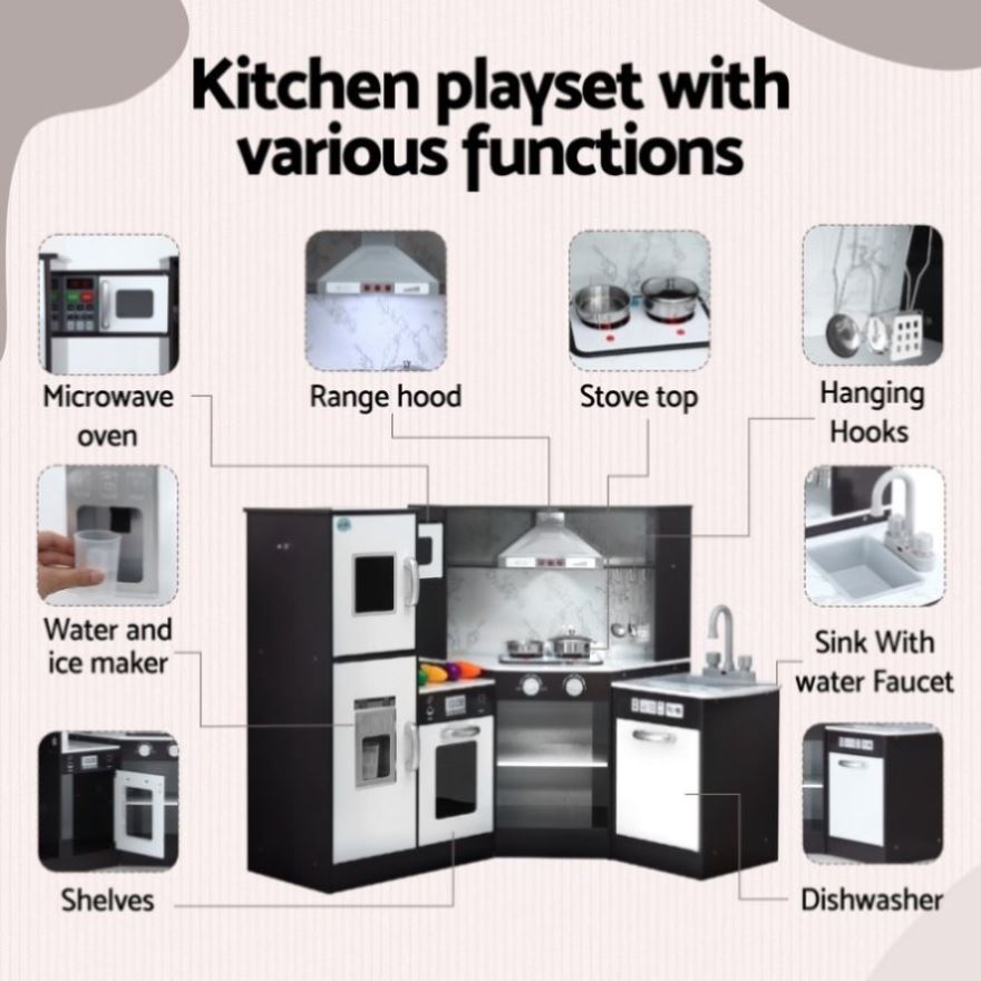 Keezi Kids Kitchen Play Set Wooden Pretend Cooking Playset w/Sounds Lights Black PLAY-WOOD-TAP-BK