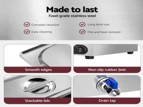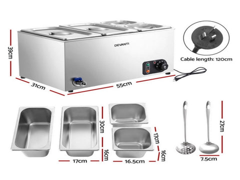 Devanti Commercial Food Warmer Bain Marie 4 Electric Buffet Pans CBM-BMC3V-SS