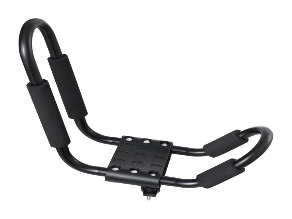 The J-shape kayak carrier is designed at an angle of about 45°, which is highly compatible and allows most different styles and shapes of kayaks to fit as tightly as possible on the carrier, together with our extra-long greater than 8.9' / 2.7 m strap with compression buckles for securing, the kayak stays stable during transportation.