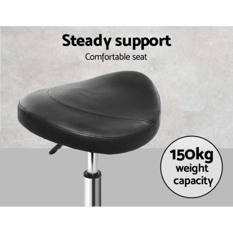 Looking to add a glamourous touch to your salon You can do it effortlessly with the Artiss' gorgeous salon stool. It's not just for a salon, but you can use these stools in your tattoo parlour, medical clinic, cafe, and music studio. Our salon style stools will instantly give your space a stylish and modern look. These stools are designed for ultimate comfort and convenient use. It features a saddle seat design that makes you feel comfortable even if you've been sitting for long hours. The thick foam padding makes the seat soft, and the PU leather upholstery with a light sheen highlights its alluring texture. Our salon stool also has five nylon smooth castor wheels that offer easy manoeuvrability. The seat is 360° rotatable, enabling you to face any direction. It also comes with a heavy-duty footrest and base for added stability and comfort. You can even adjust its height with an SGS-certified gas lift lever. So why wait Purchase this beautifully designed salon stool. You won't regret it.