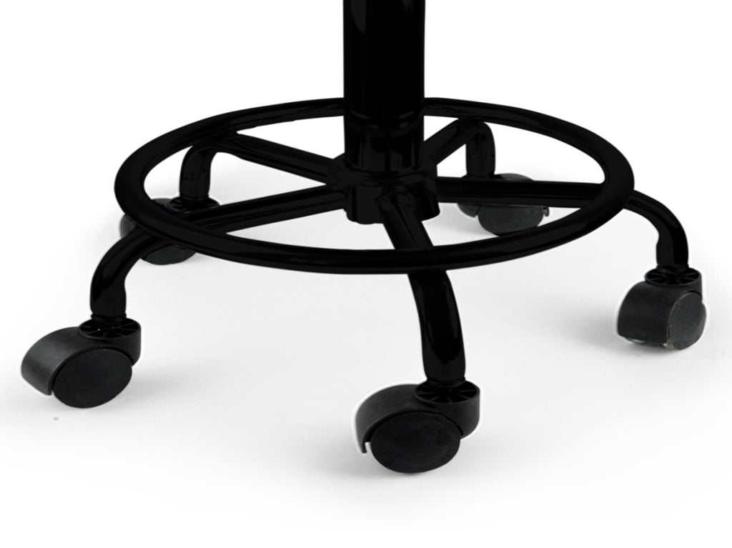 With a 360-degree rotation and a gas-lift lever, these stools allow effortless height adjustment, catering to different workstations or counter heights. The circular footrest enhances support, ensuring a comfortable seating experience during extended use. Equipped with five smooth-rolling casters, they provide easy mobility, making them an excellent choice for dynamic work environments.