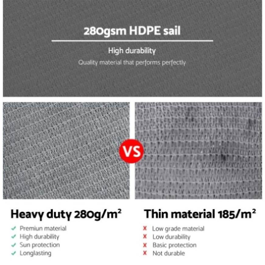 Designed to be a permanent covering, our Shade Sail is made from highly breathable 280g/m² commercial grade 100% polyethylene fabric. This allows cooling air to pass through and help keep the under shade areas well ventilated. The material also blocks up to 98% of harmful UV rays and is all-weather proof to suit Australian climatic conditions. Plus, the material is further enhanced with Americhem UV-resistant additive from the USA to prolong its UV protection effectiveness.
