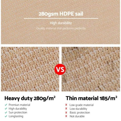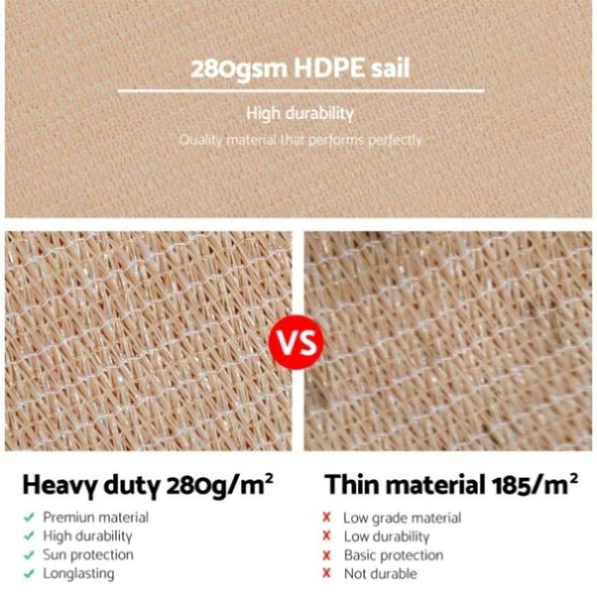 Instahut Shade Sail 6x6m Rectangle 280GSM 98% Sand Shade Cloth SAIL-H-6X6-C-SA