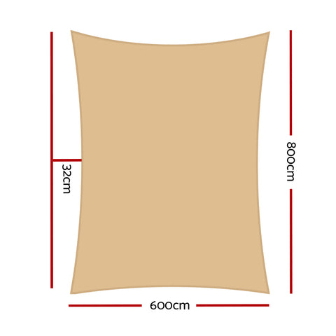 Instahut Shade Sail 6x8m Rectangle 280GSM 98% Sand Shade Cloth SAIL-H-6X8-C-SA