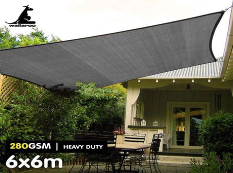 Wallaroo 280GSM Outdoor Sun Shade Sail Canopy Grey Square 6m x 6m GYSS-280-6X6