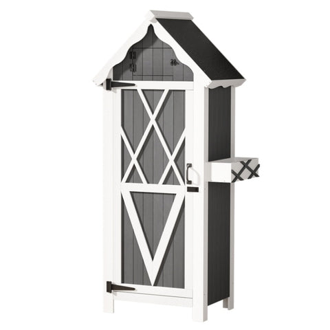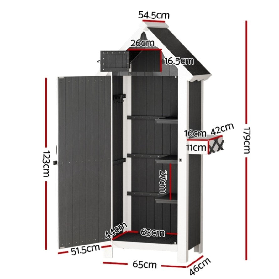 For stylish and practical outdoor furniture that can withstand any weather, look no further than the Gardeon Wooden Storage Shed. The gorgeous cottage shed design is perfect for gardeners in need of generous storage space. The cabinet is made from solid Fir wood and features 3 tiers of shelving, 3 convenient hangers and a cute cuckoo-style upper compartment for all your gardening needs. Its weather-resistant structure and water-resistant asphalt roof will keep it standing through any kind of weather. The magnetic latched door will keep all your goods safe and sound away from the elements and backyard fauna. Use indoors or outdoors for unique rustic appeal. Easy to assemble and even easier to use, you’ll love the convenience and style of the Gardeon Wooden Storage Shed.