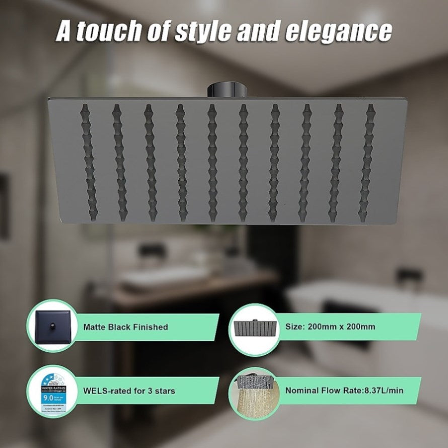 200mm Shower Head Square 304SS Electroplated Matte Black Finish V63-826371