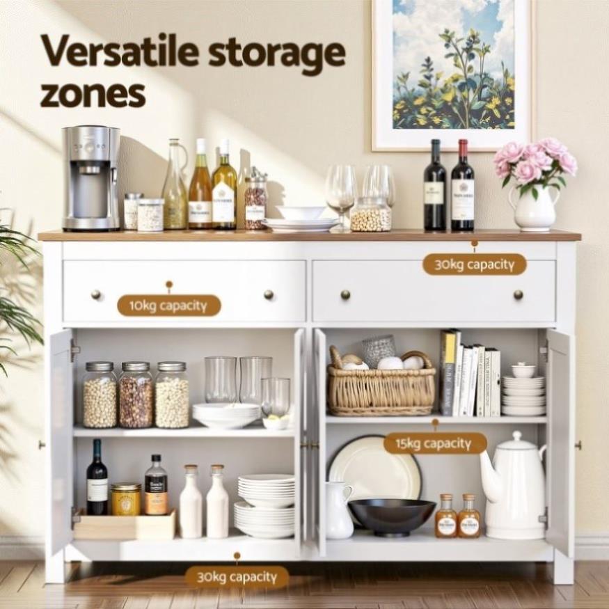 Artiss Buffet Sideboard Storage Cabinet Kitchen Cupboard 2 Drawers 140CM White FUR-C-SID140-WH-AB