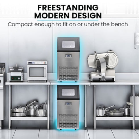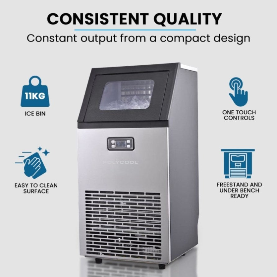 POLYCOOL Commercial Ice Maker Machine, up to 60kg/24hr, Timer & Self Cleaning Programs V219-FDSICMPY60KA