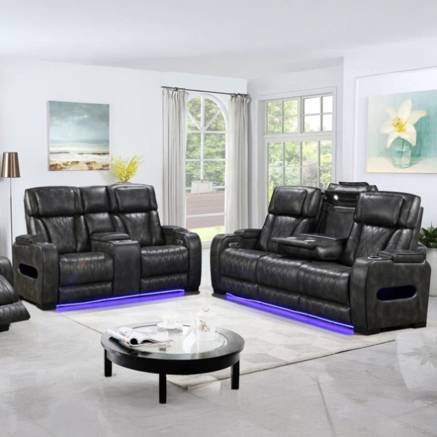 3-2 Seater Electric Air Leather Dark Grey Recliner Set V43-SET-EMP-3R-2RGR