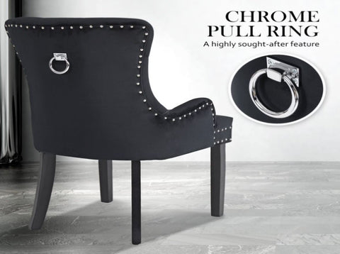 La Bella 4 Set French Provincial Dining Chair Ring Studded Lisse Velvet Rubberwood - Black