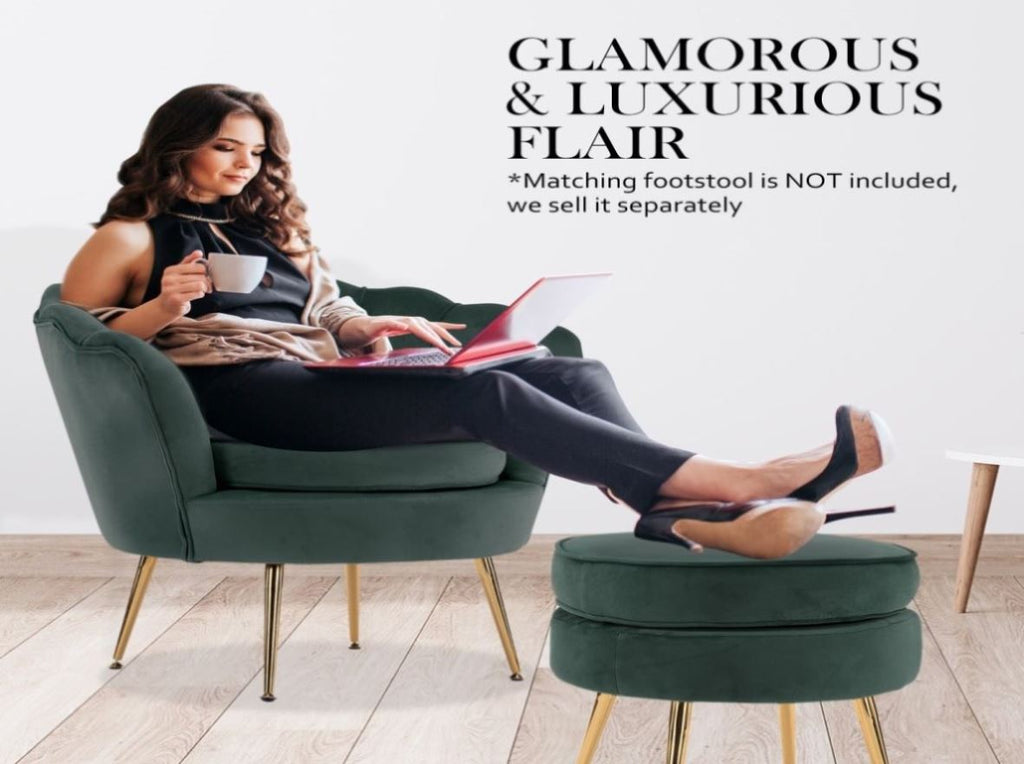 Armchair Padded Lounge Chair Accent Velvet Shell Scallop GREEN V274-FT-VAC-1596-GN