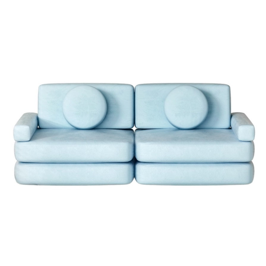 For a practical piece of furniture that doubles as a creative play experience, you'll love the Artiss Play Couch. With its modular design, the couch can be rearranged into a multitude of shapes to relax, hide and play. The set features 4 base cushions in 2 foldable pieces, 2 trapezoid cushions, 2 rectangular cushions and 2 round cushions, perfect for building and rebuilding. The couch is made from extra thick seat cushioning wrapped in premium velvet upholstery with a luxurious touch. The zippered cover can be easily removed, making cleaning simple and convenient. Soft and wear-resistant, your family will love the fun and frivolity of the Artiss Play Couch.