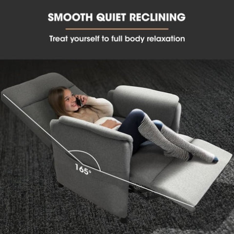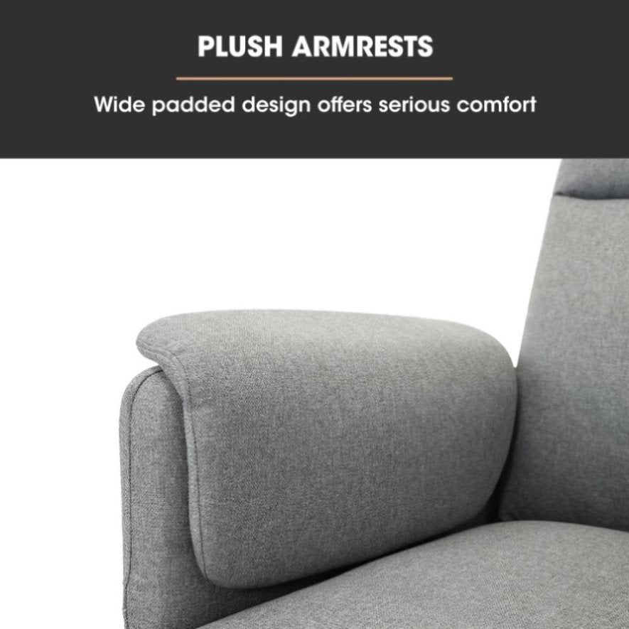 Upholstered in breathable fabric, the chair is generously padded from head to toe for a plush, supportive feel. A handy side pocket keeps remotes, books or magazines within arms reach, and with a 136kg weight capacity, its built for reliable, everyday use.