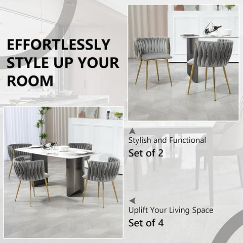 SERENIT Grey Modern Hand Weaving Dining Chairs,Velvet Upholstered Side Chairs with Gold Legs, Chic V255-GP1800-DC-GREY