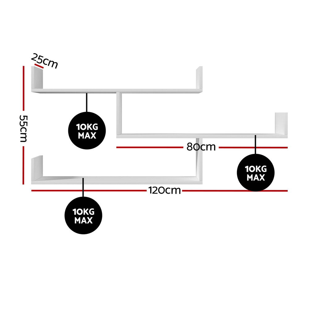 Artiss Floating Wall Shelf 3 Tier White FURNI-N-WALL-01-WH