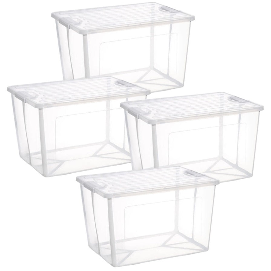 4x 37 Litre Modular Clear Foldable Storage Box with Lid Plastic Tub Collapsible V563-75199_4X