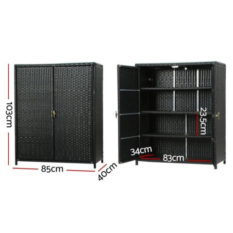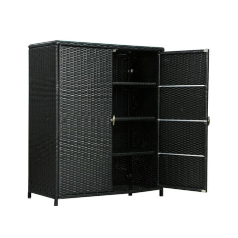Gardeon Outdoor Storage Cabinet Box Garage Wicker Shelf Chest Garden Shed Tools OSB-CABI-RATTAN-BK