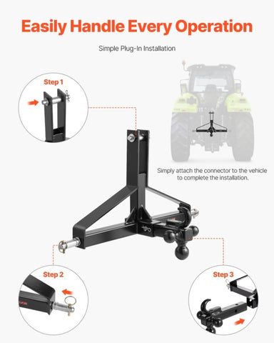 VEVOR 3 Point Trailer Hitch with 2 in Receiver, 3pt Quick Hitch Attachment, Heavy Duty Tractor Tow V952-ASJXJSQDKSXTJ54AM001V0