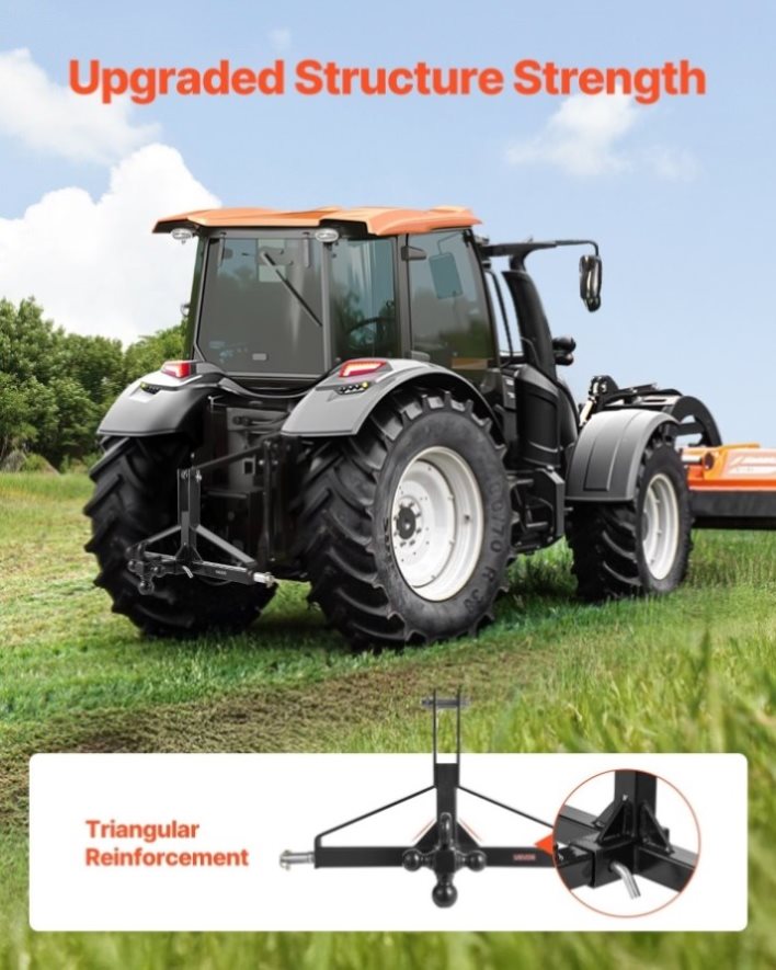 Featuring a robust triangular structure and 0.15 in / 3.75 mm wall thick steel, the 3 point hitch attachment with high-strength welding ensures stability and resistance to breakage or deformation. It provides reliable support for heavy-duty farming tasks without fail.