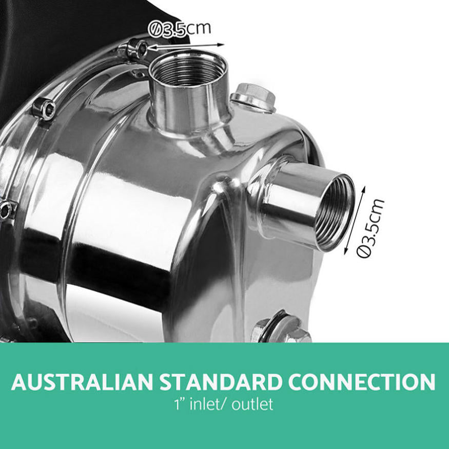 Made from durable stainless steel and alloy, this garden pump is the perfect water pump for your home and garden. It is ideal for connecting your rain tank or to irrigate your garden. This 600-800W pump produces 54L/min makes it effortless in irrigating the garden or veggie patch. The pump has overheat and overload protections; makes it very safe to use.