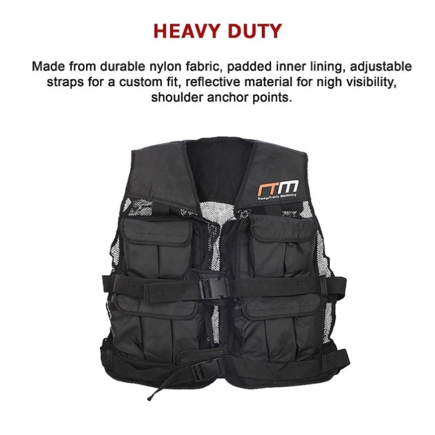 The vest itself is made from a tough nylon fabric that's light and which doesn't restrict movement. It's also easy to clean and maintain. A padded lining makes this vest comfortable to wear for even long periods, and adjustable Velcro straps give you a perfect contoured fit. Other smart features include reflective material for increased visibility at night, and anchor points on the shoulders to attach other training equipment.