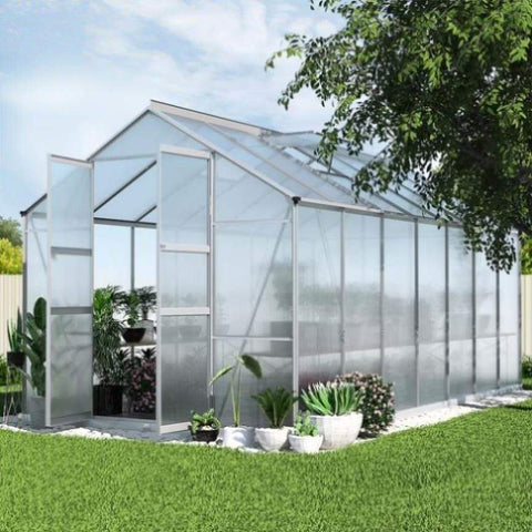 Green Fingers Greenhouse 4.1x2.5x2.26M Double Doors Aluminium Green House Garden Shed GH-ALU-C-410X250-DOU-AB