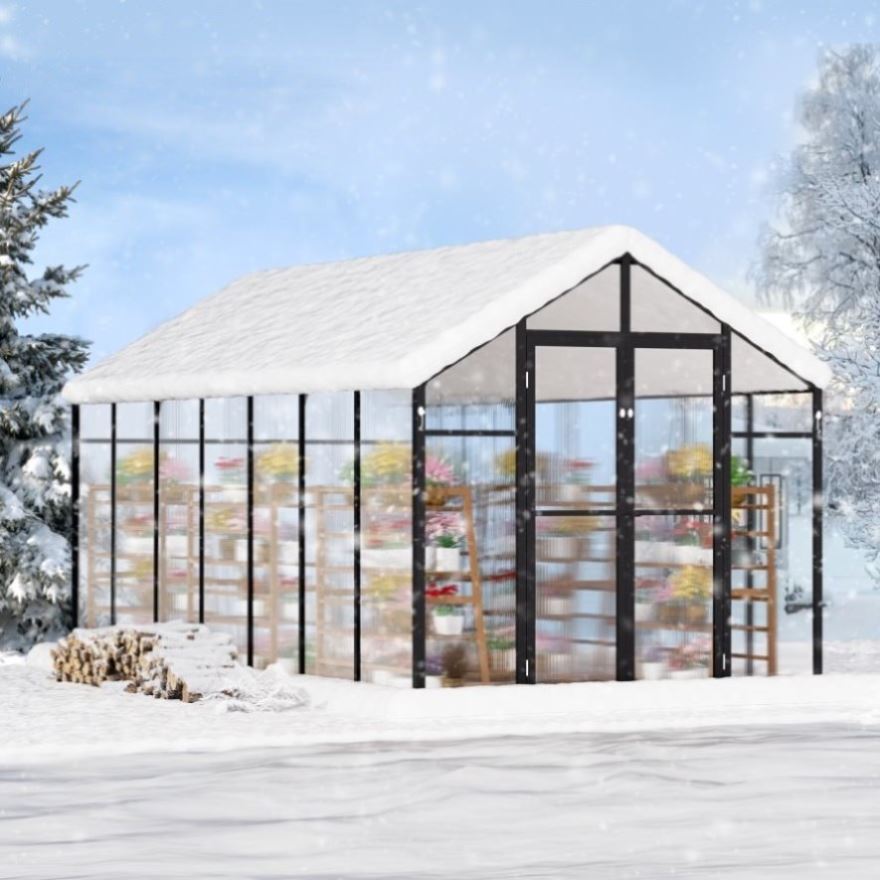 The backyard greenhouse is equipped with a thicker and stronger black aluminum frame, which is lightweight yet highly durable, with stainless steel screws for a longer service life and better resistance to harsh weather conditions.