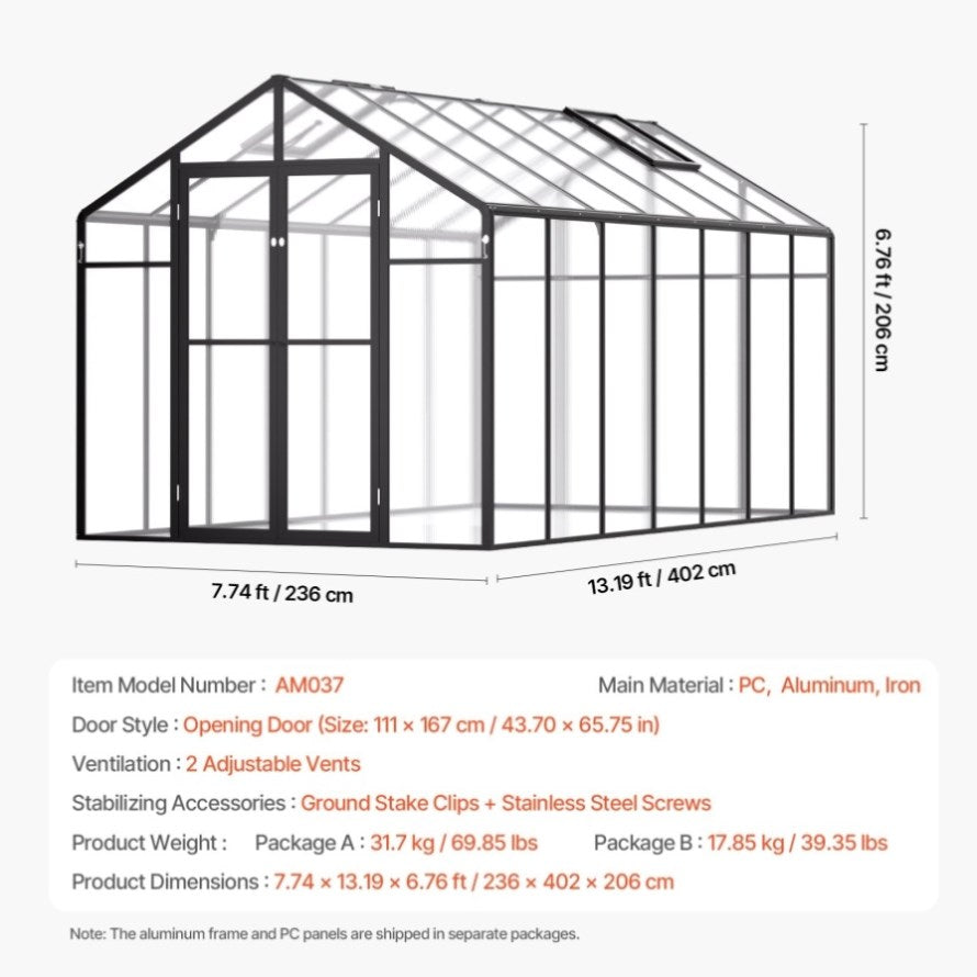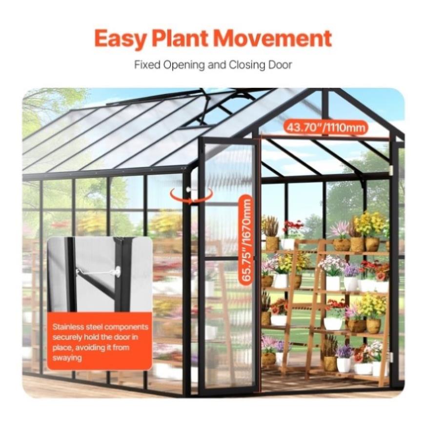 VEVOR Polycarbonate Greenhouse 8 x 14 Ft Outdoor Walk-in Greenhouse for Garden V952-JTSZWSL8W14FB0RRXV0