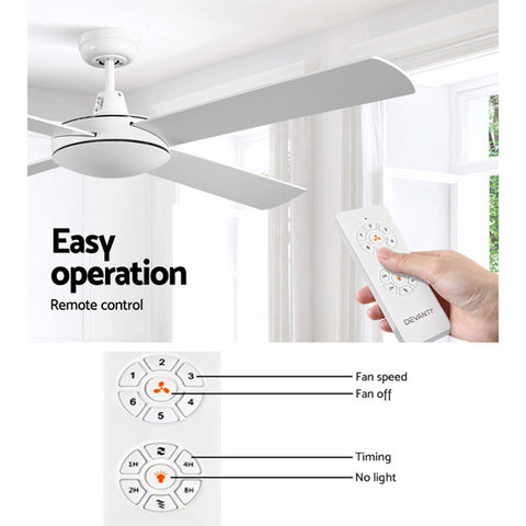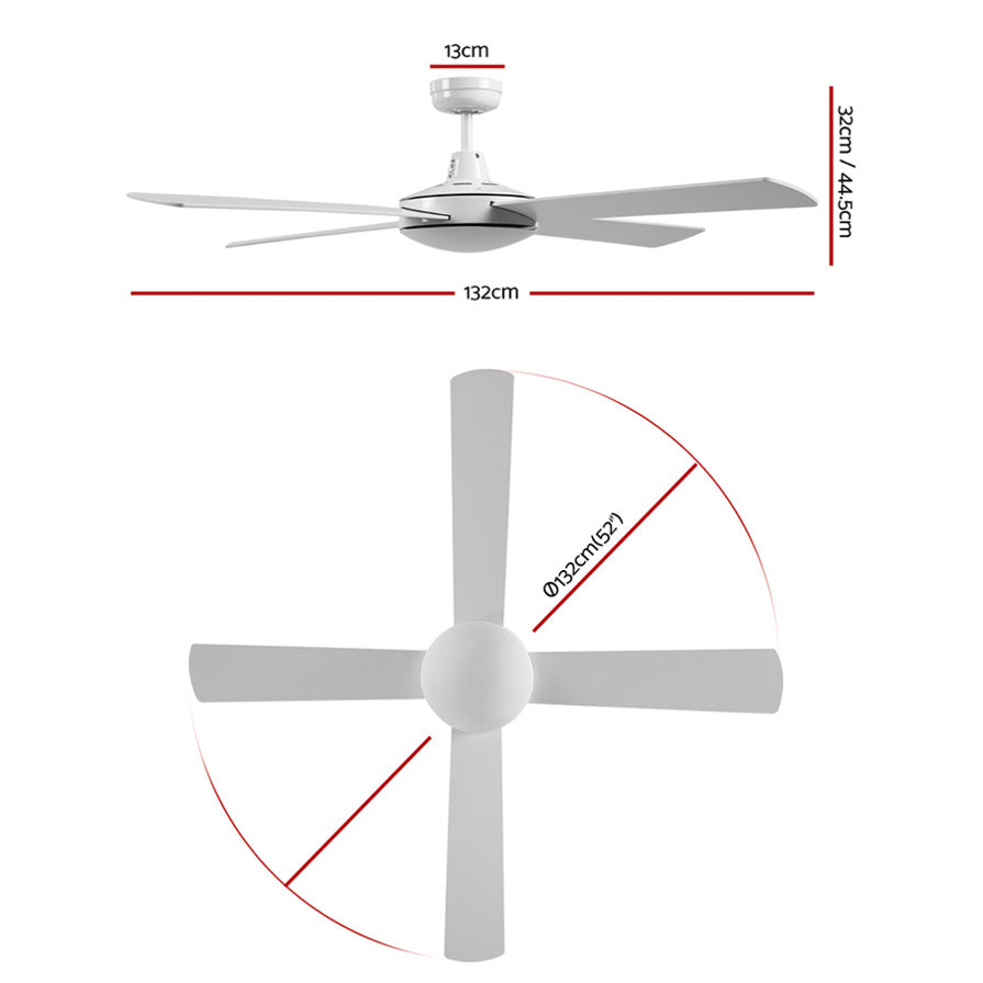 Devanti 52'' Ceiling Fan DC Motor 4 Blades w/Remote - White CF-B-52NL-WH