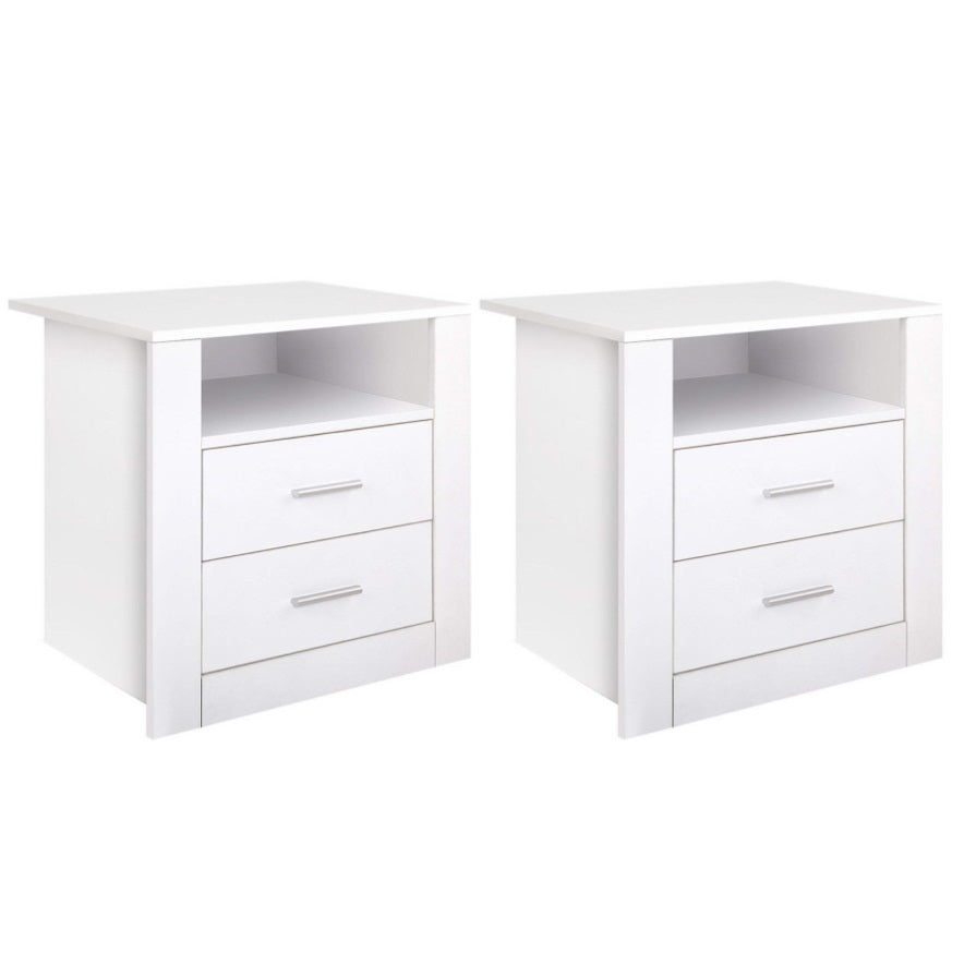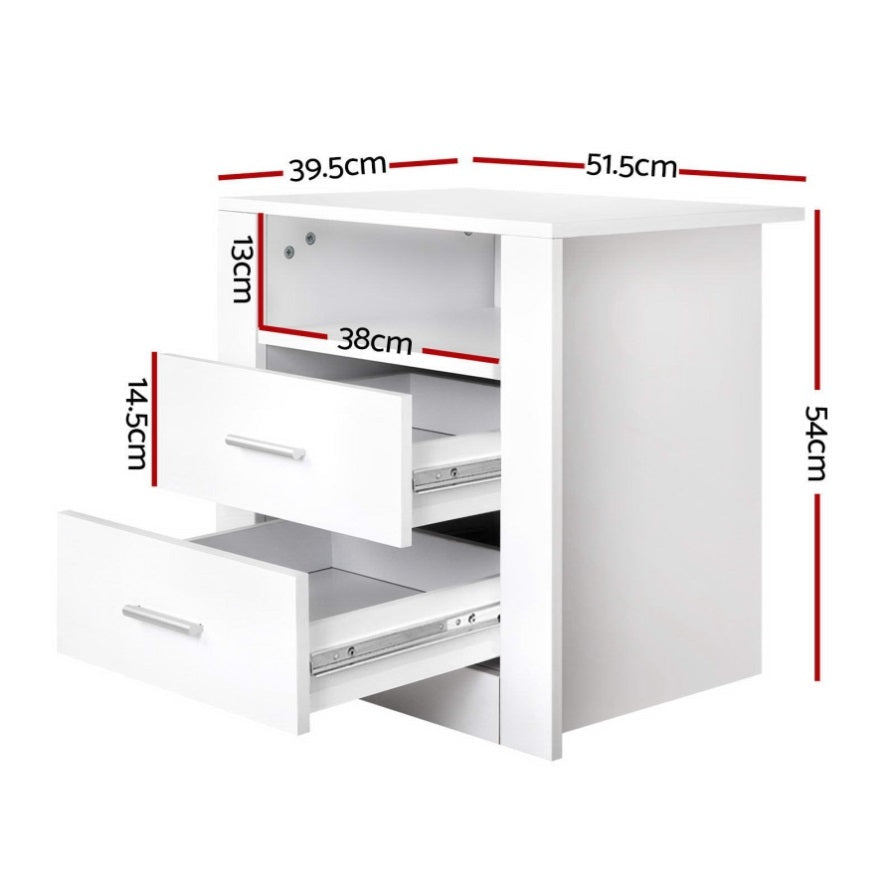 Artiss 2 X Bedside Table 2 Drawers with Shelf - TARA White FURNI-SIDE-SHELF-WHX2
