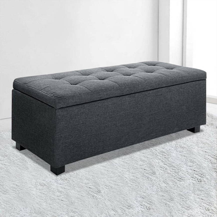 Artiss Storage Ottoman Blanket Box 97cm Linen Charcoal OTM-L2-LINEN-CHA