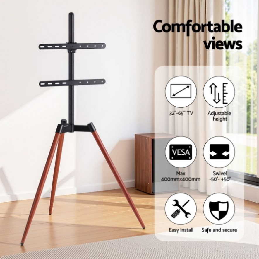 Artiss TV Stand 32-65 inch LED LCD Screen Wooden Tripod Easel Height Adjustable TV-MOUN-104-BK-WAL